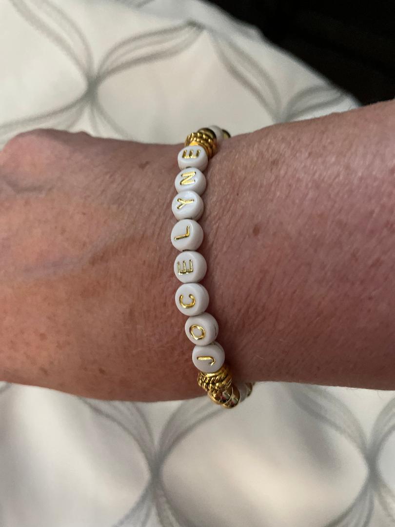 14k gold plated with Pearls Bracelet. Personalized with White and Gold Initial Beads,