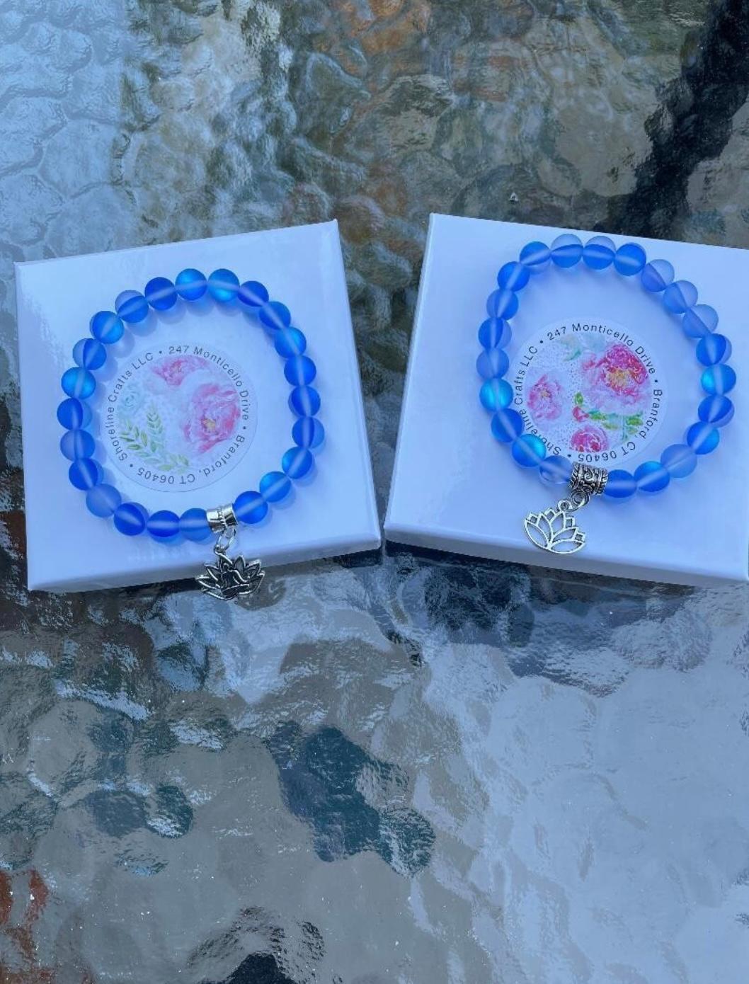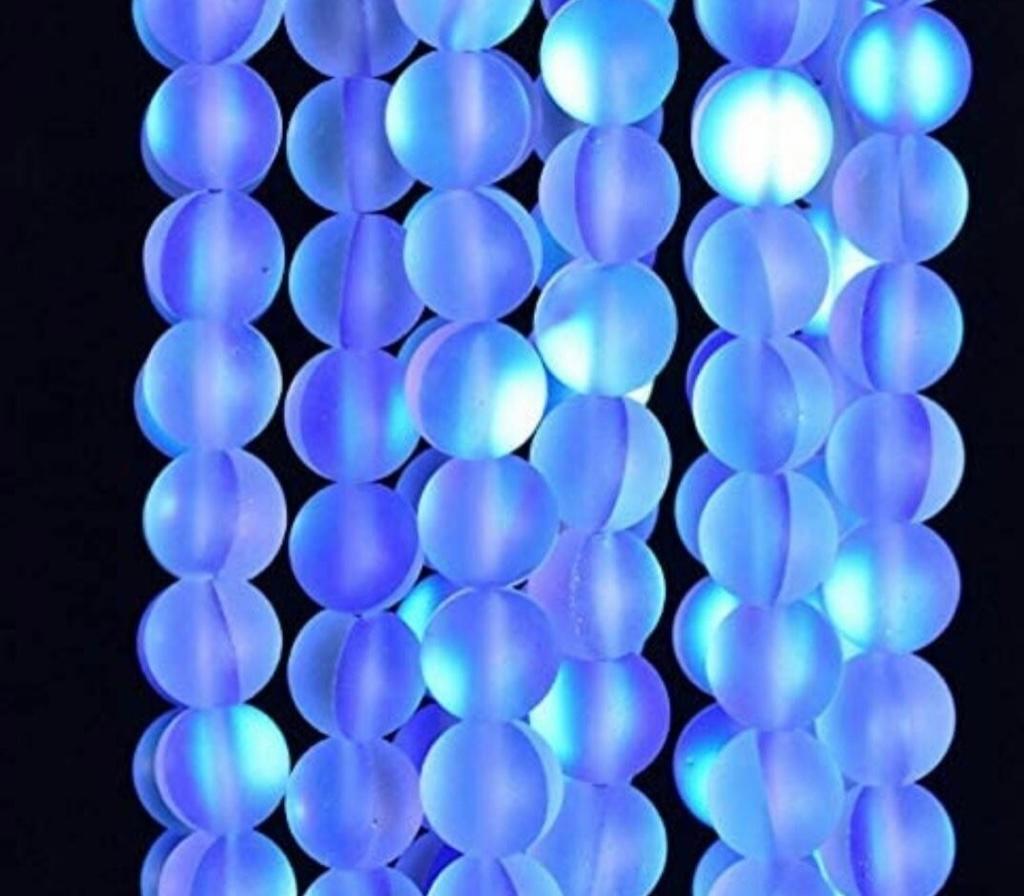 Frosted Matte Titanium Round Blue Mystic Aura Quartz Gemstone 8mm with Silver Yoga OM Lotus Flower Charm
