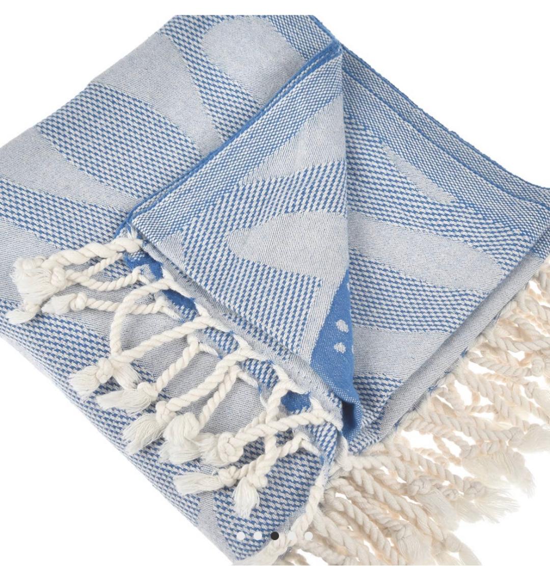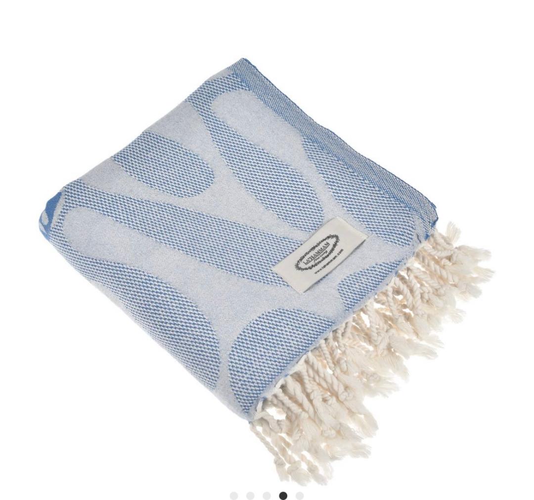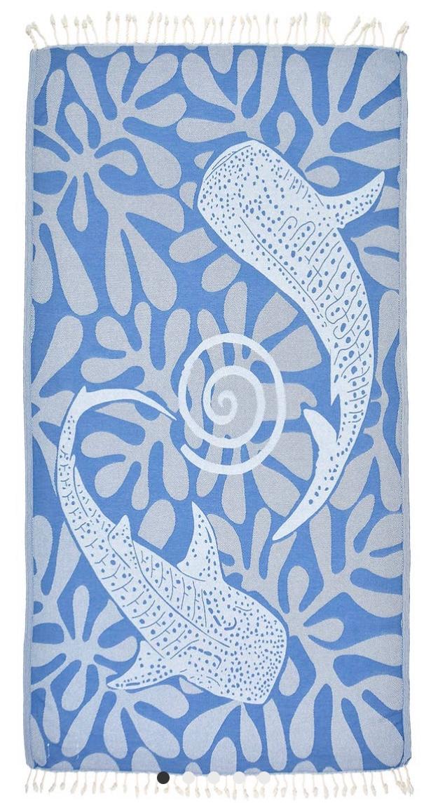 Blue Whale Peshtemal Pure Cotton Beach Towel. Tight woven, two sided absorbent, sand repellent and OEKO-TEX 100% cotton.