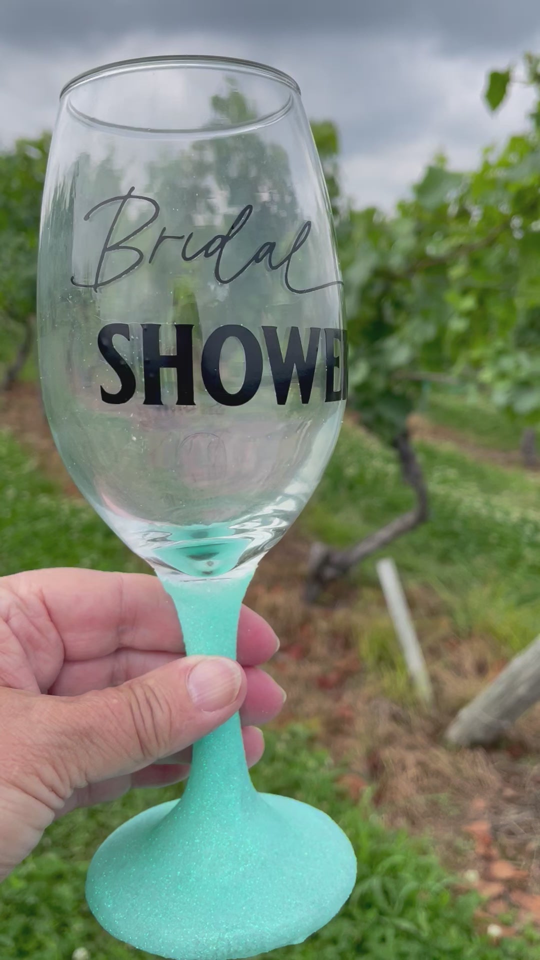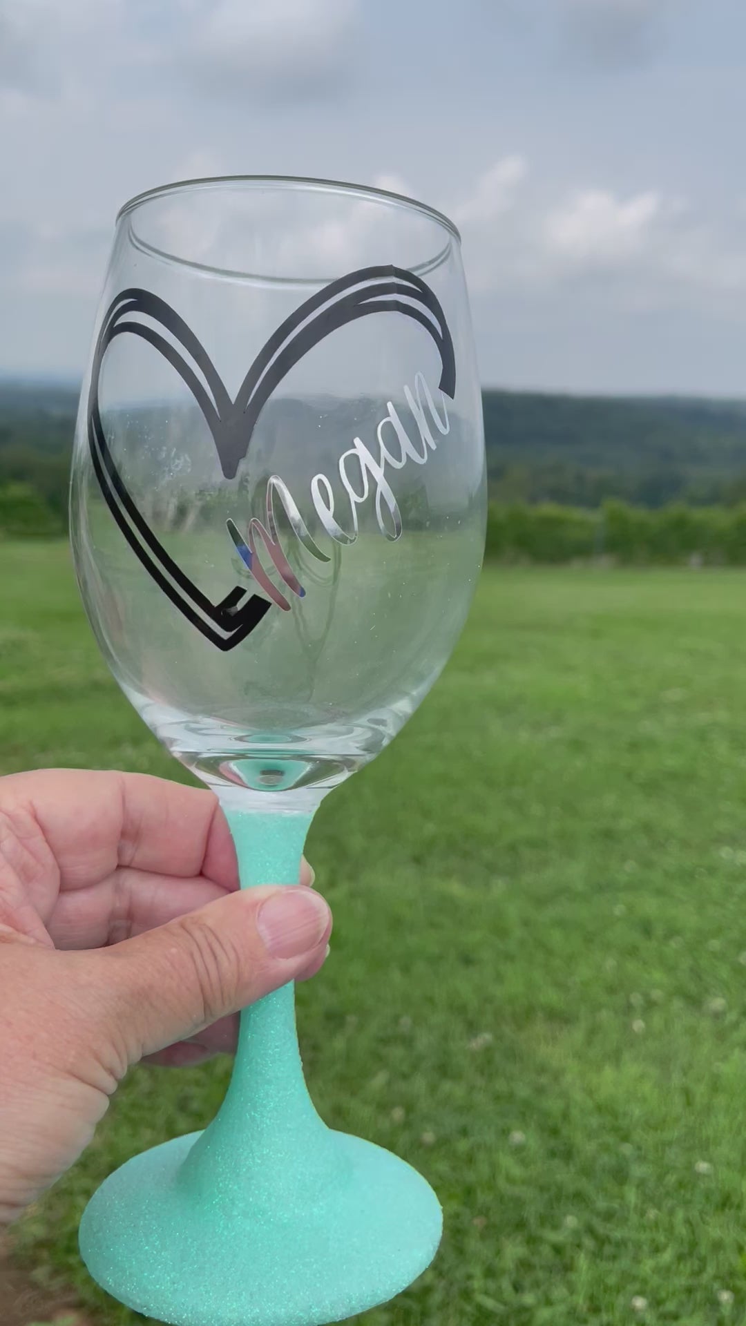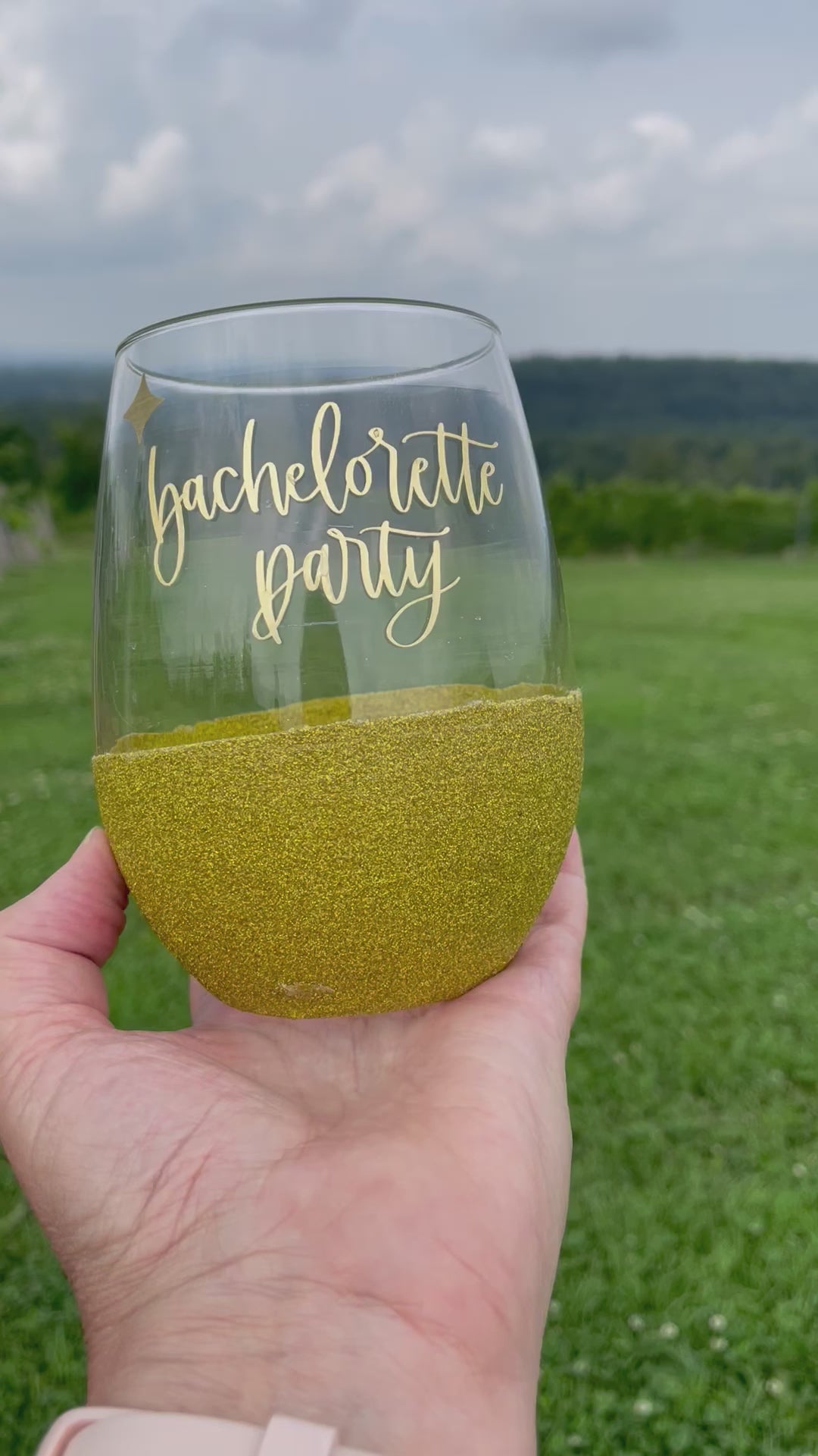 These customized Wine Glasses come in either Stemless or with Stem. They come in different styles and Glitter color on the bottom.