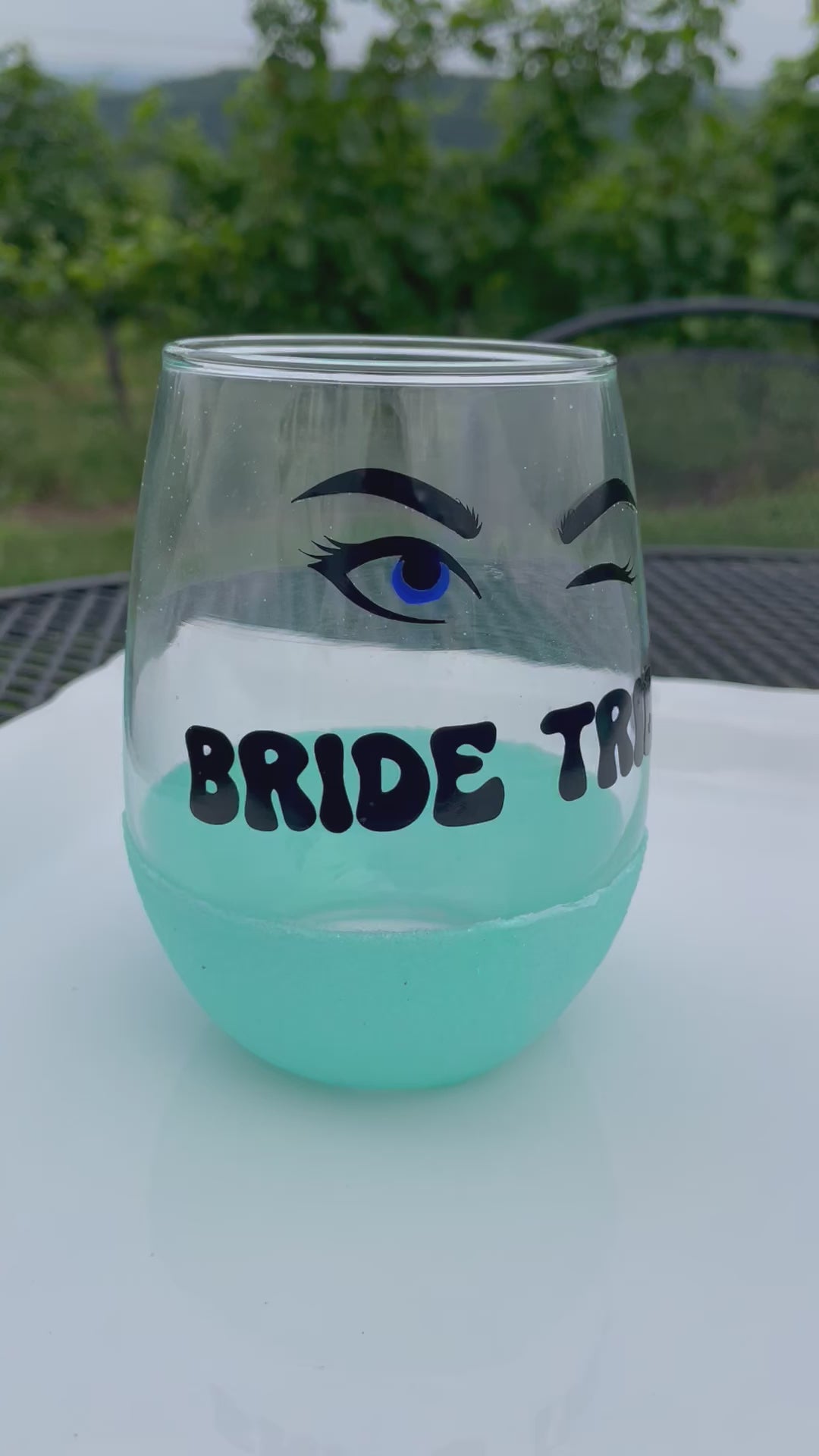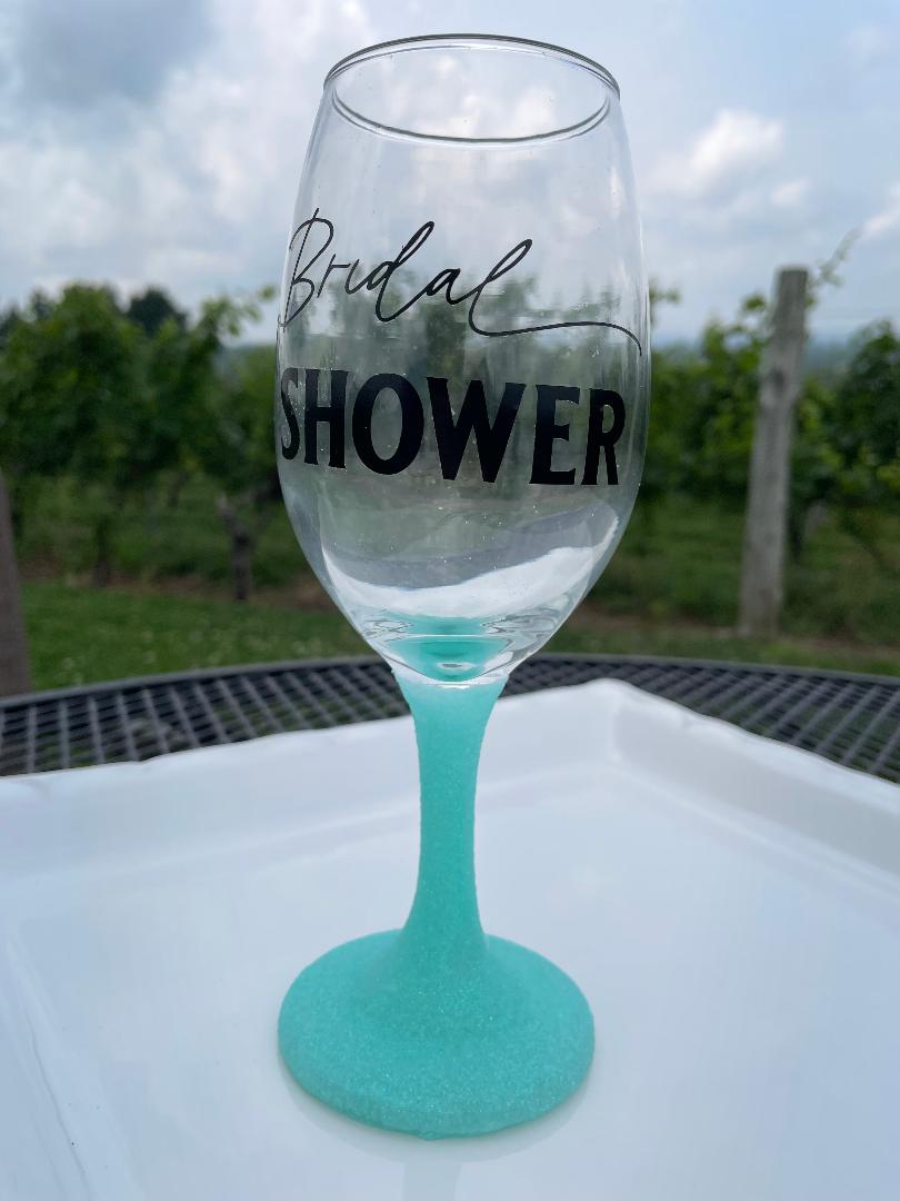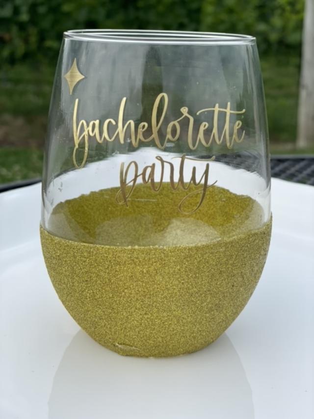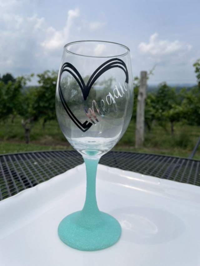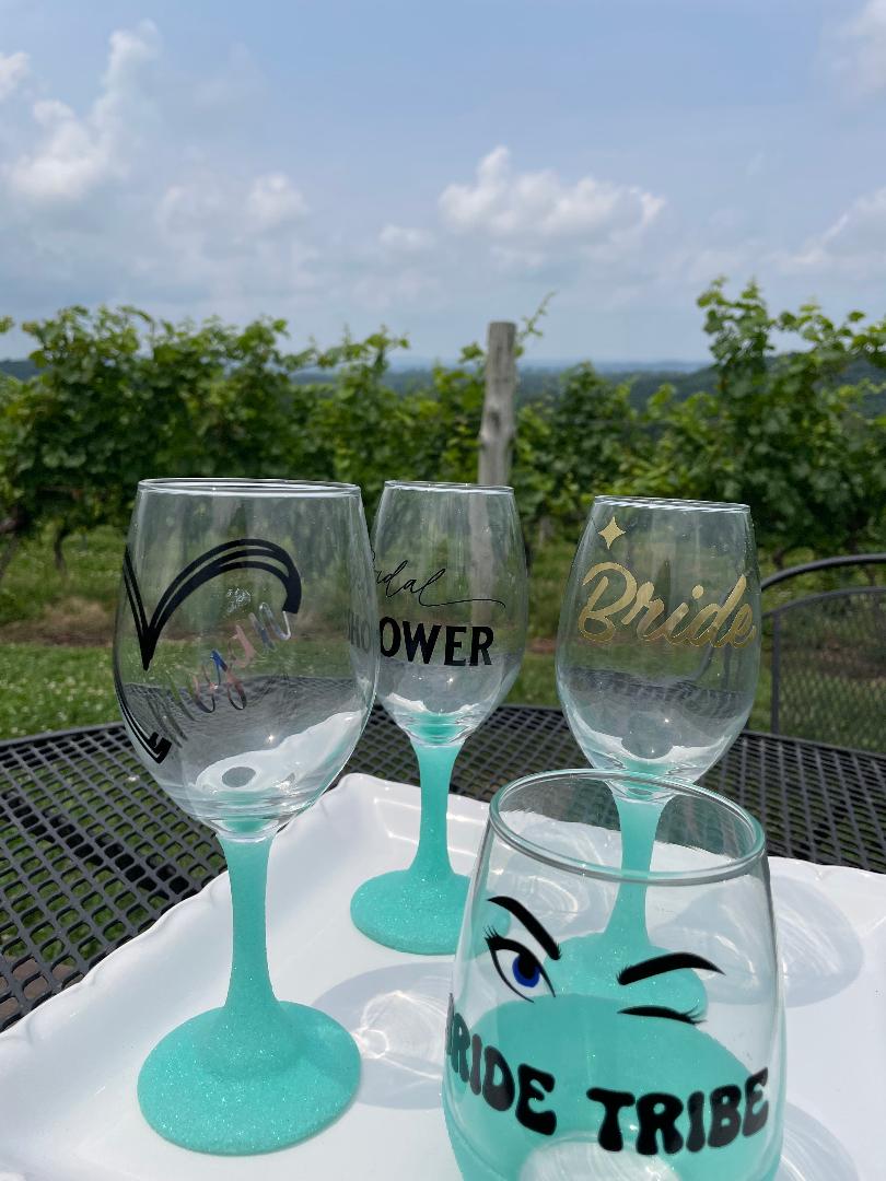 These customized Wine Glasses come in either Stemless or with Stem. They come in different styles and Glitter color on the bottom.