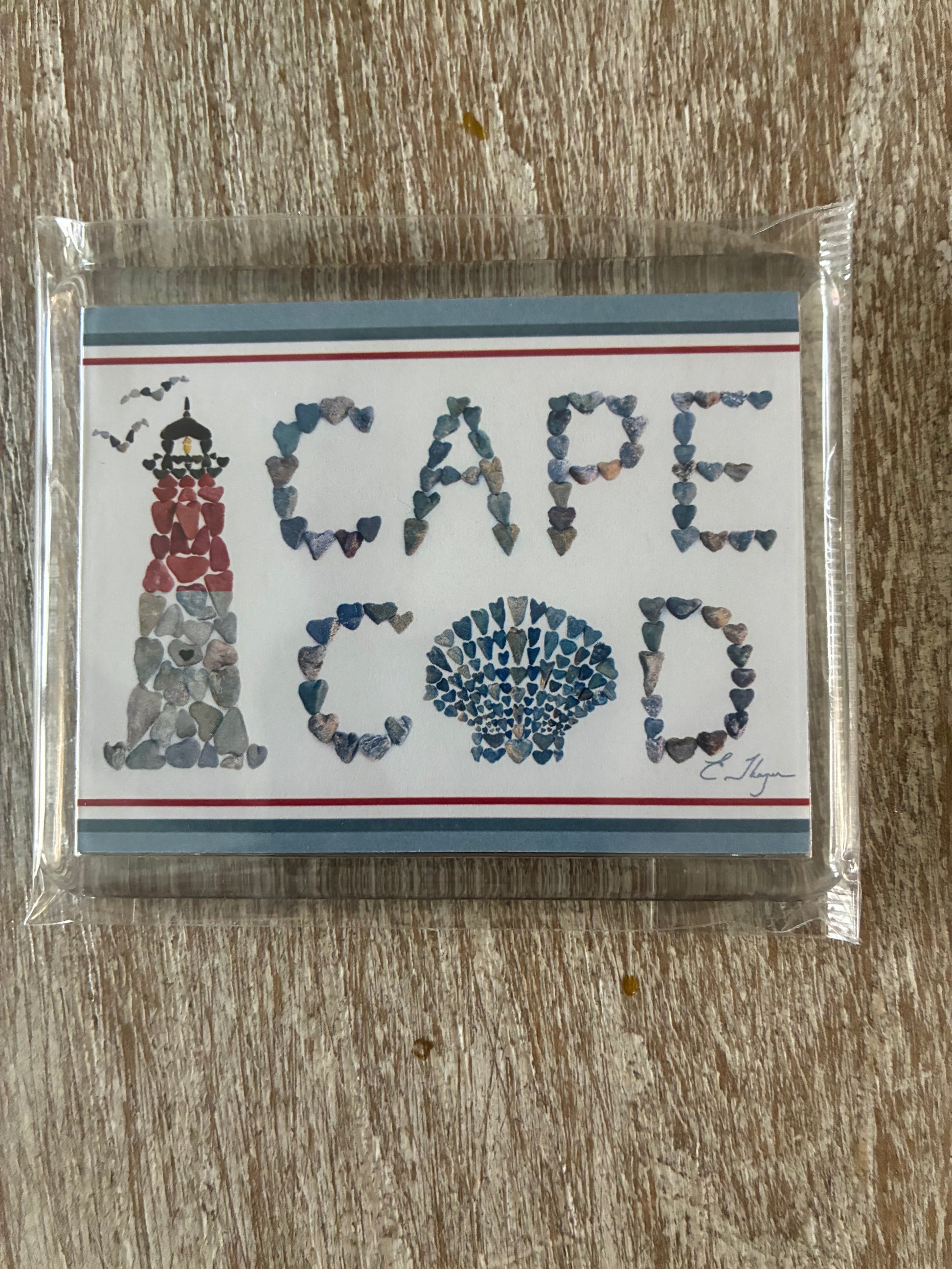 Cape Cod Magnet. New England made and packaged in cello bag. Label on the back reads: Designed with the artist's collection of heart rocks shaped by the surf along the Maine coast.