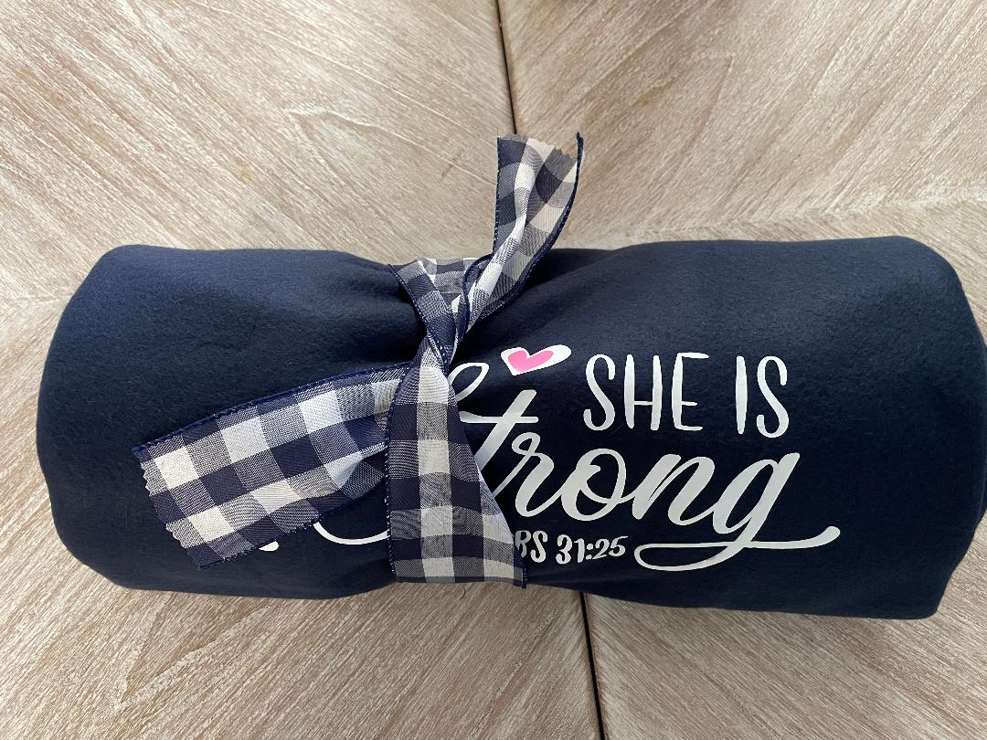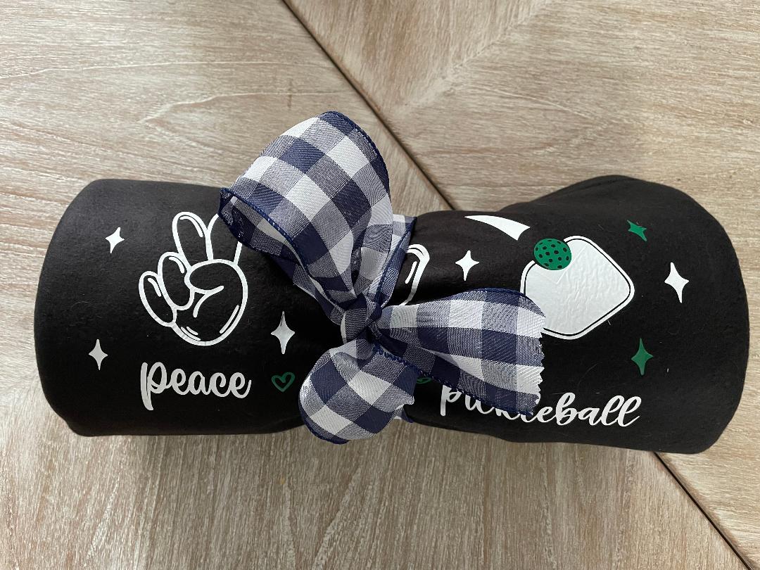 Permanent Vinyl heat pressed on blanket. Can be customized just email me with the information.
