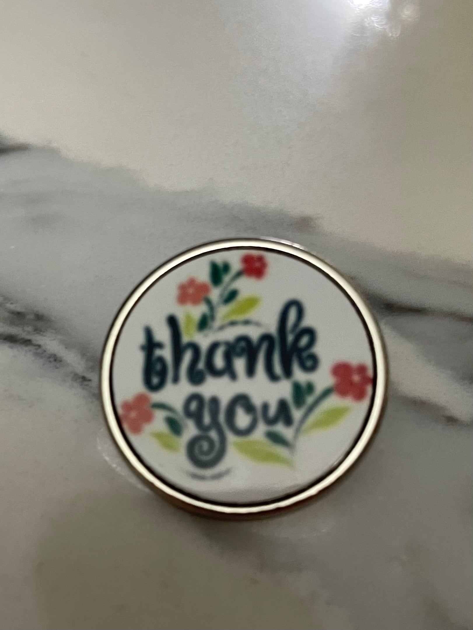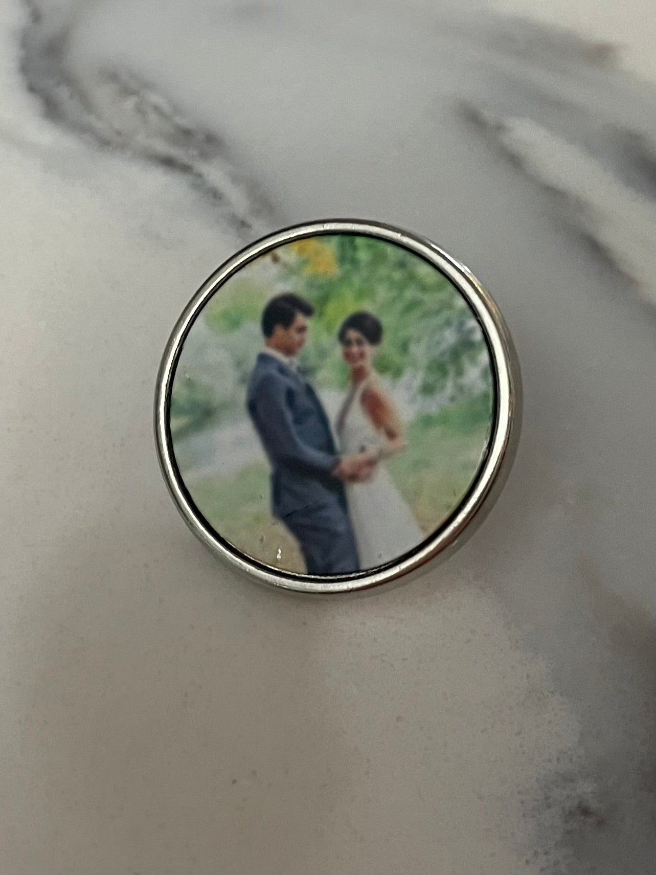 Optional add on: 1" Sublimation Pin Button for additional $5 Customized using your picture or the words Thank you. Email us a photo of your choice and we will add it to the pin.