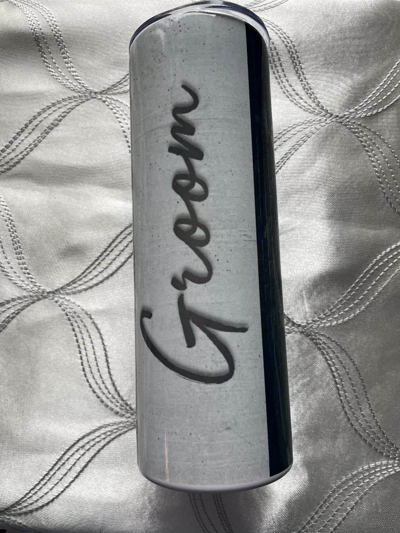 20oz Stainless Steel Double Wall Tumbler comes with Lid and Stainless Steel straw. Groom Gray and Black Tumbler.