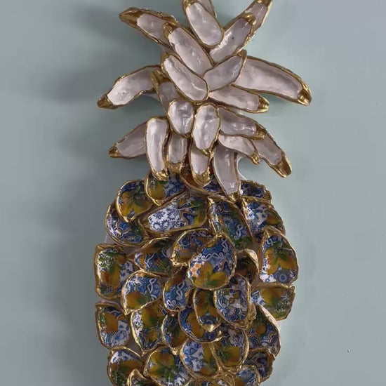 Blue, White and Lemons Oyster Shell Large PINEAPPLE Artwork