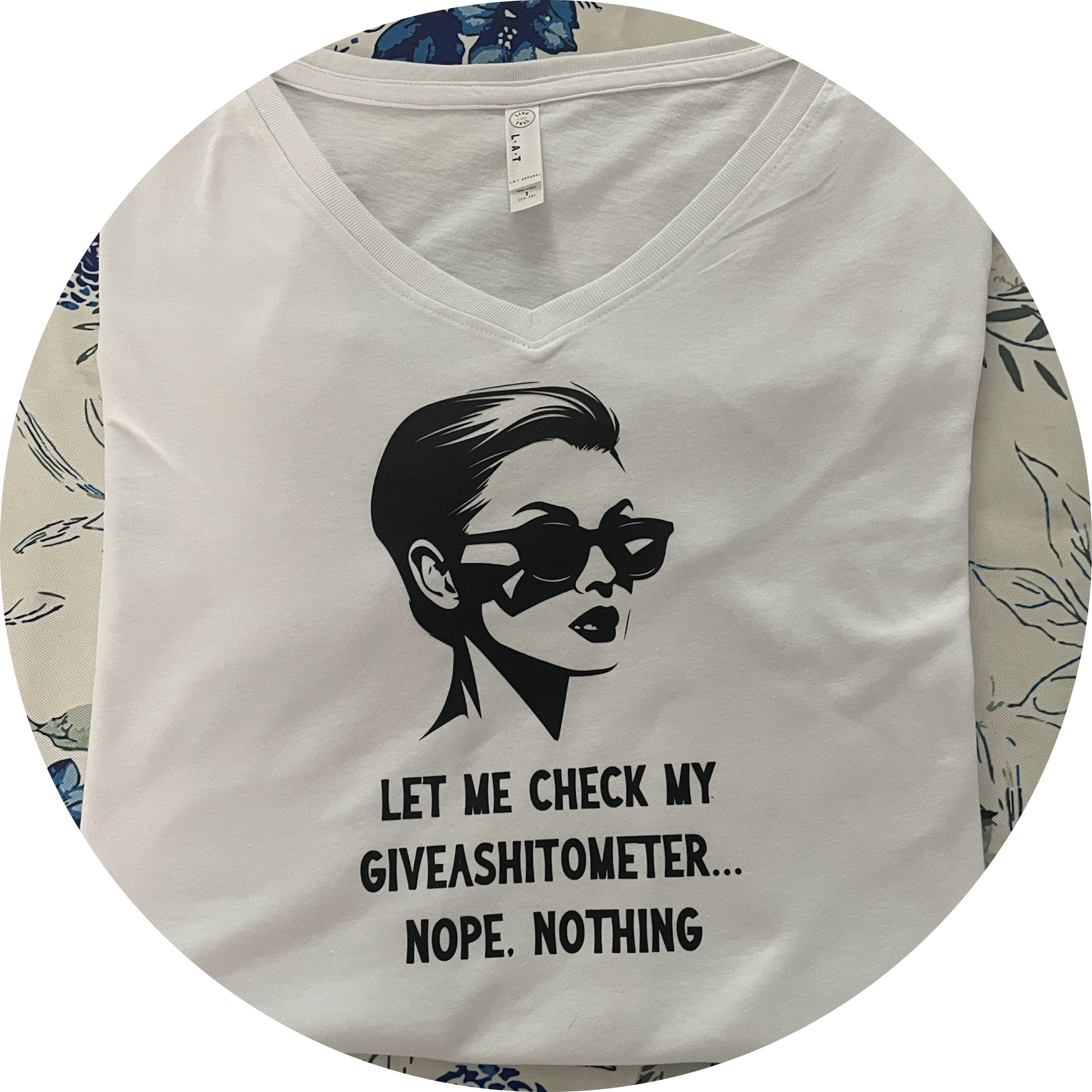 V-NECK T-shirt Saying: Let me check my giveashitometer.... nope. nothing.