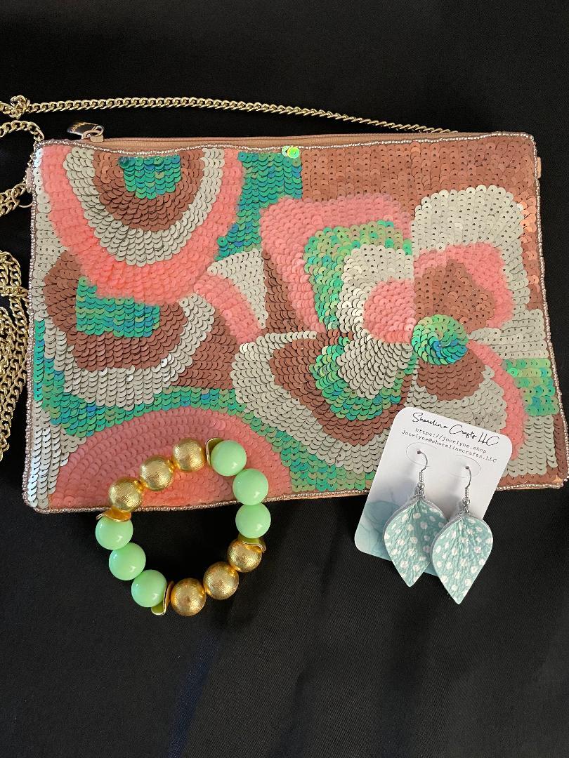 Also Pictured: Zorski Floral Sequence Crossbody Bag and Mint Dart Pedal Earrings