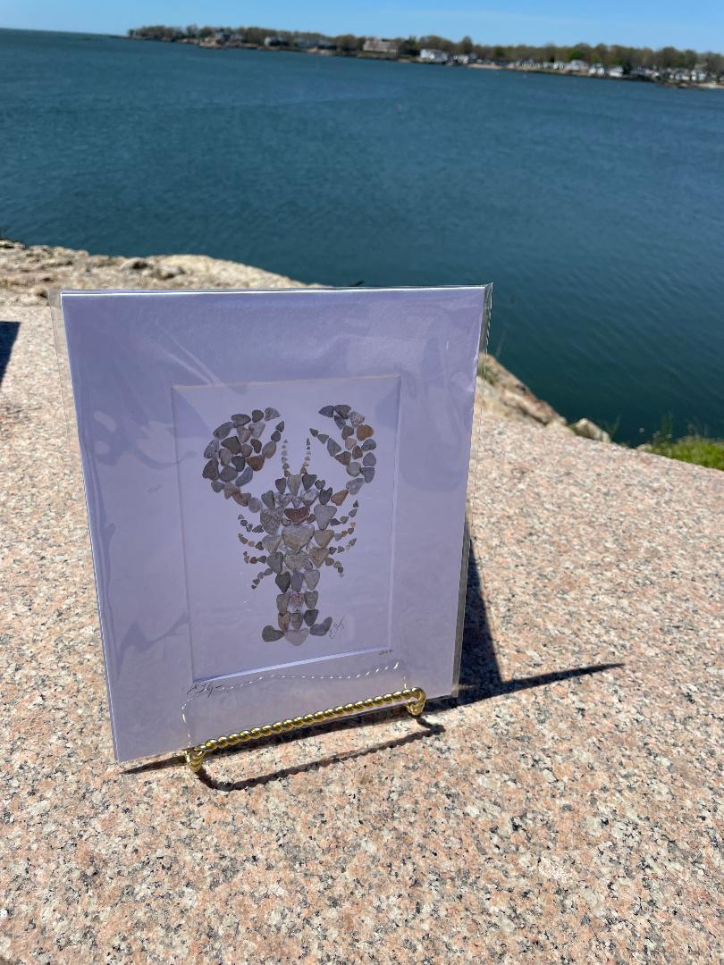 Love Rocks Me Lobster Print. Printed in Maine on soft white matte stock, this signed and dated print is surrounded by an acid-free white matte with full backing and packaged in a protective cellophane sleeve.