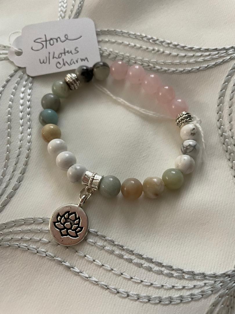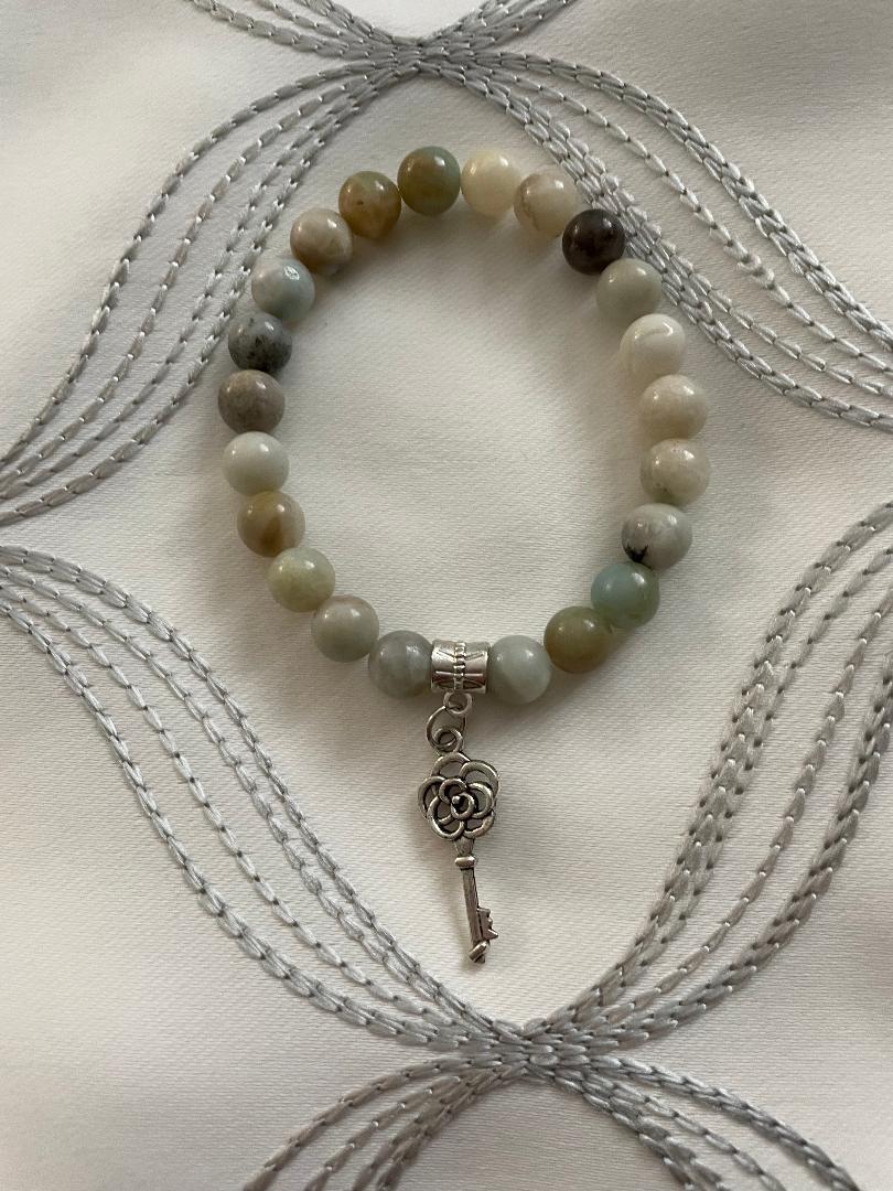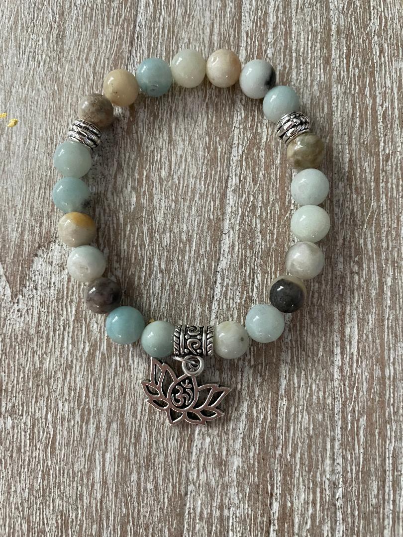 This Bracelet is made of Natural Amazonite Beads, Natural Crystal Beads Stone Gemstone Round Loose Beads with antique silver accents and Yoga Charm. Custom made to order in any size,