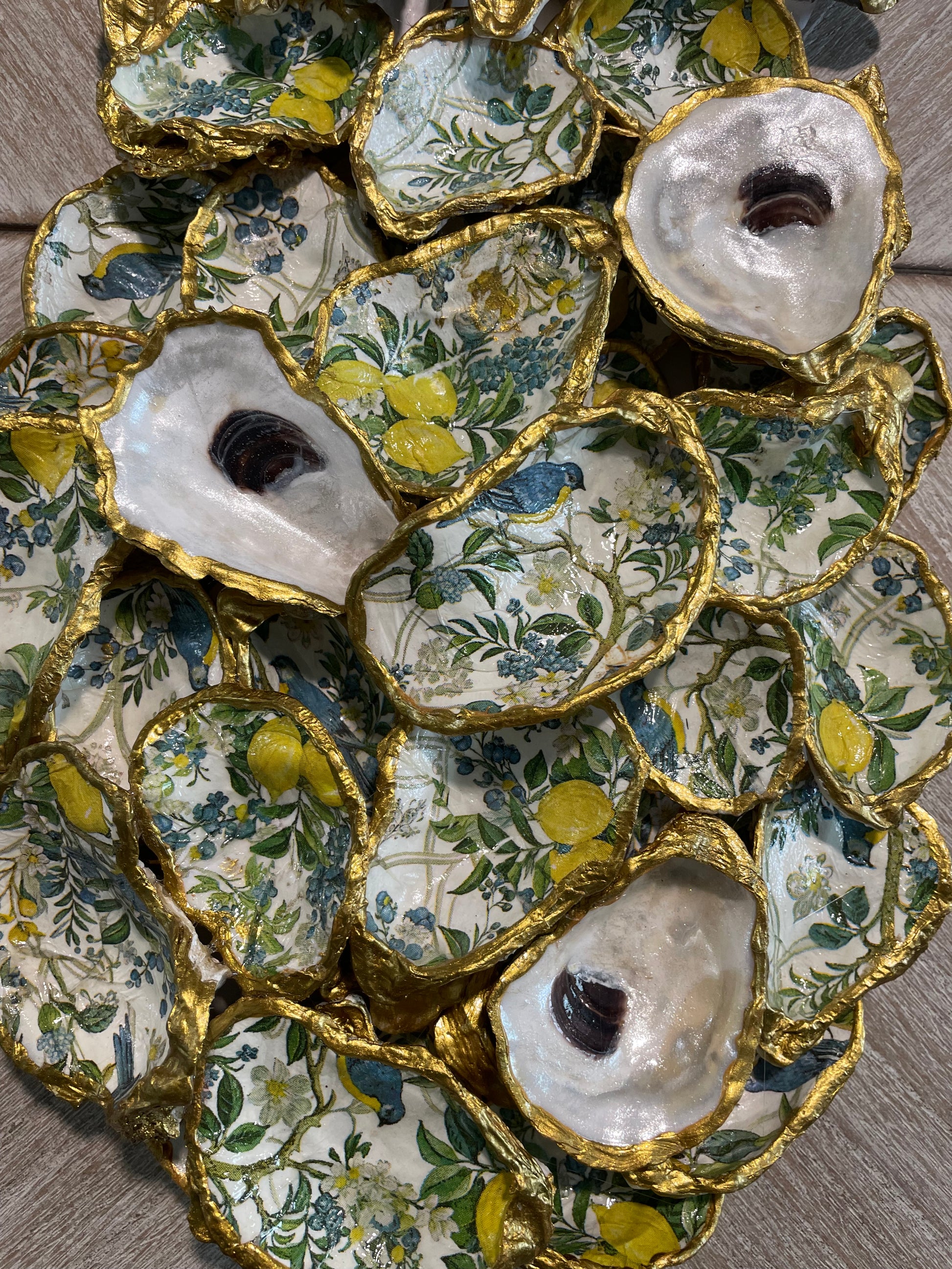 Bird on Lemon Tree Oyster Shell PINEAPPLE Artwork