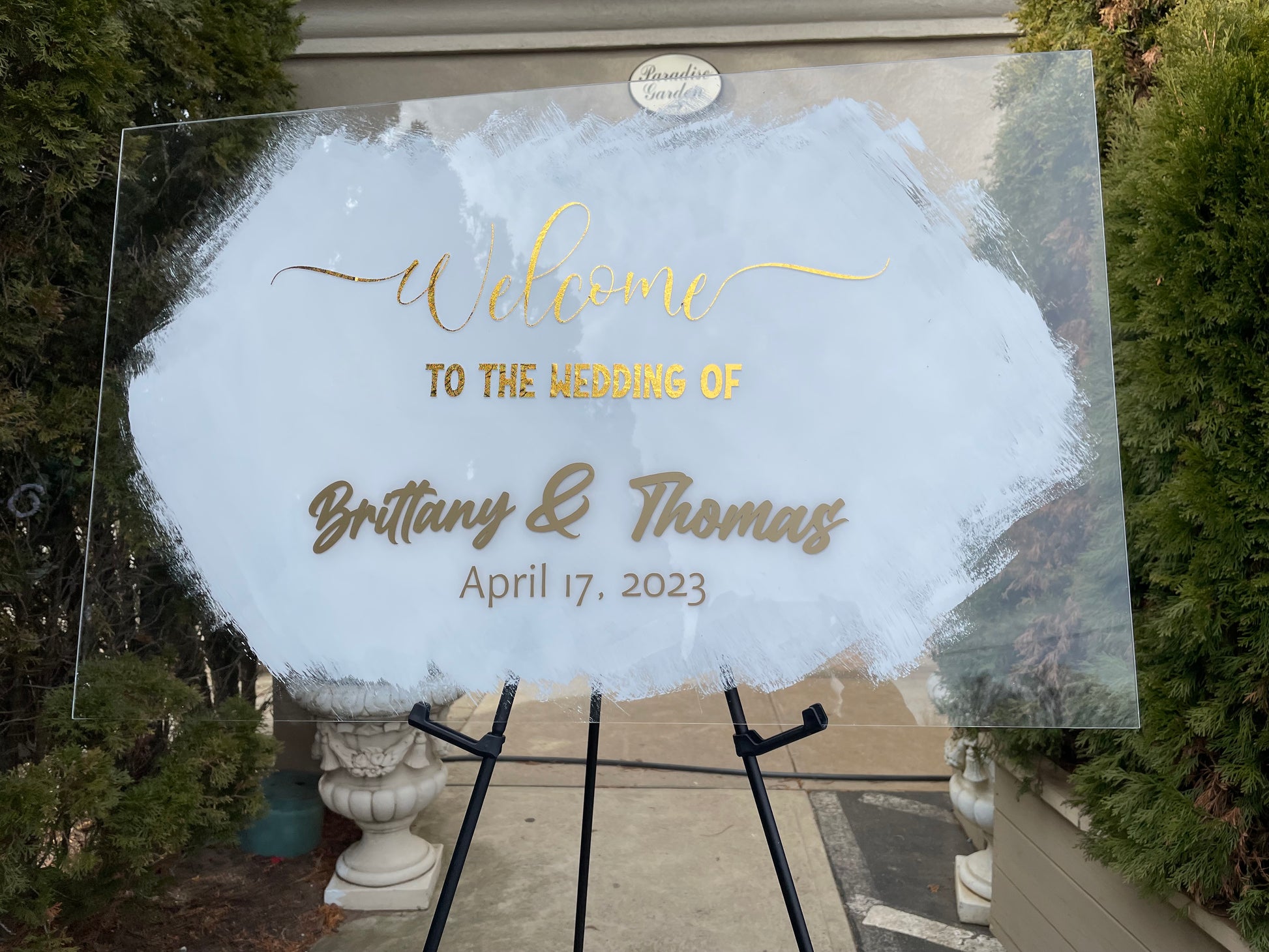 Welcome to our wedding sign. Personalized with Welcome to the wedding of your names, and date.