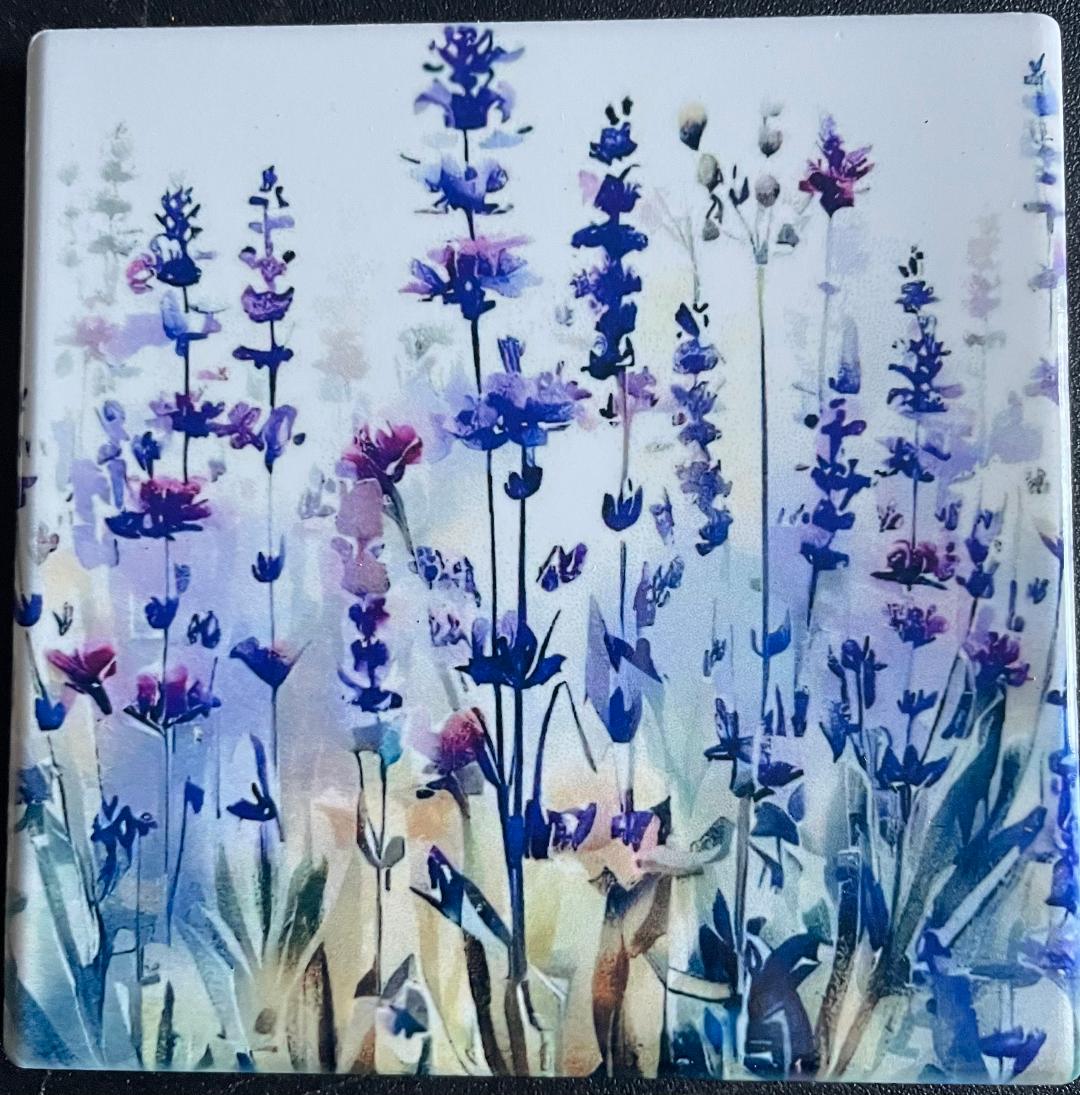 These coasters have been printed with the photographers photos transferred onto coasters using sublimation. 4 1/2" square with cork backing.