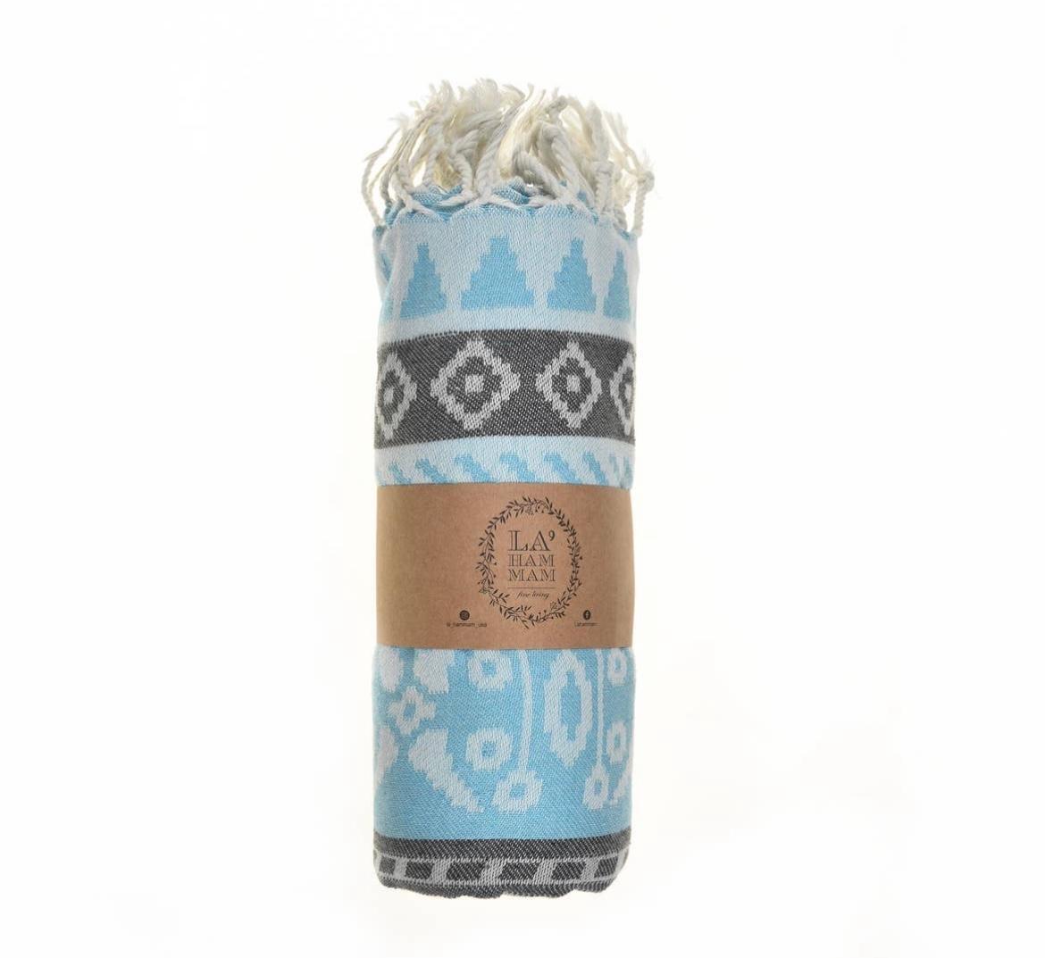 Size 38"x 65" (Thin no Terry) Blue 100%Cotton. You Can use as a bath towel, beach towel, yoga mat, picnic blanket. This Peshtemal towel is highly Absorbent And incredibly fast drying.