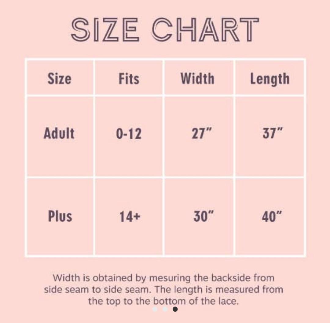 Plus size fits Women's size 14 - 18 Width 30" Length 40"