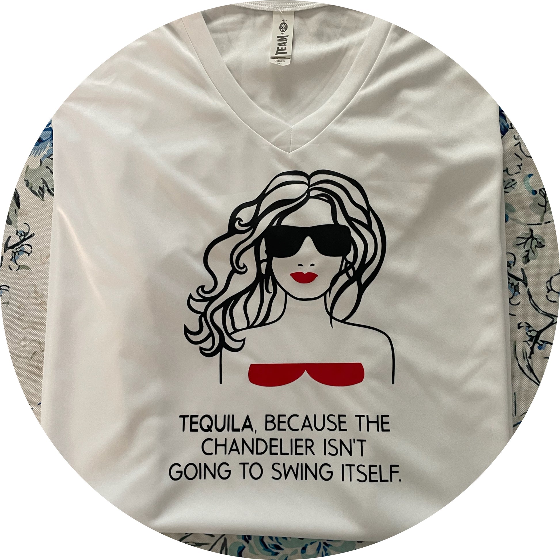 V-NECK T-shirt Saying: Tequila, because the chandelier isn't going to swing itself.