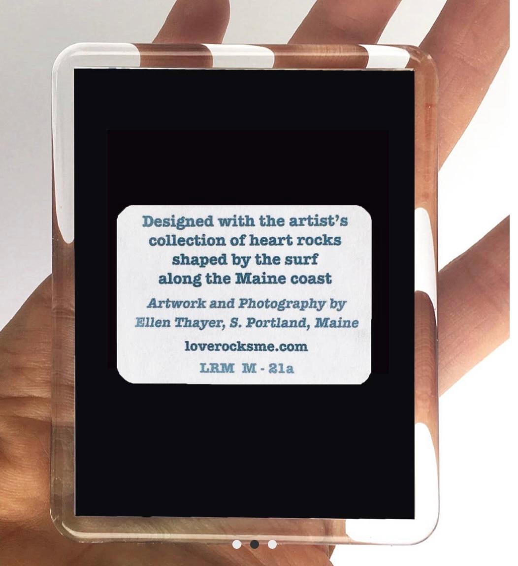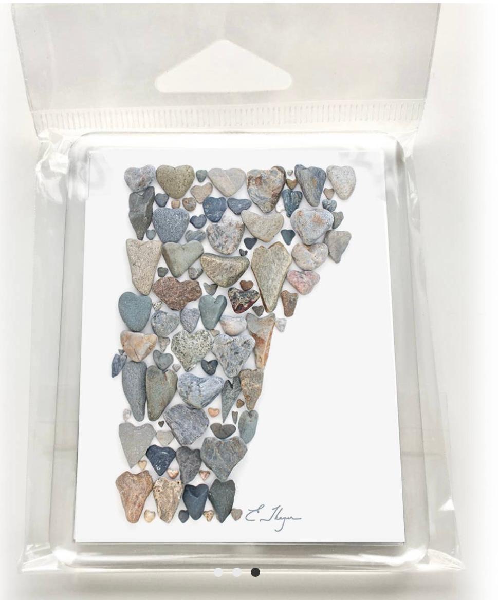 Vermont Magnet. New England Made and packaged in cello hang bag. Sticker on the back reads: Designed with the Artist's collection of heart rocks shaped by the surf along the Maine Coast.
